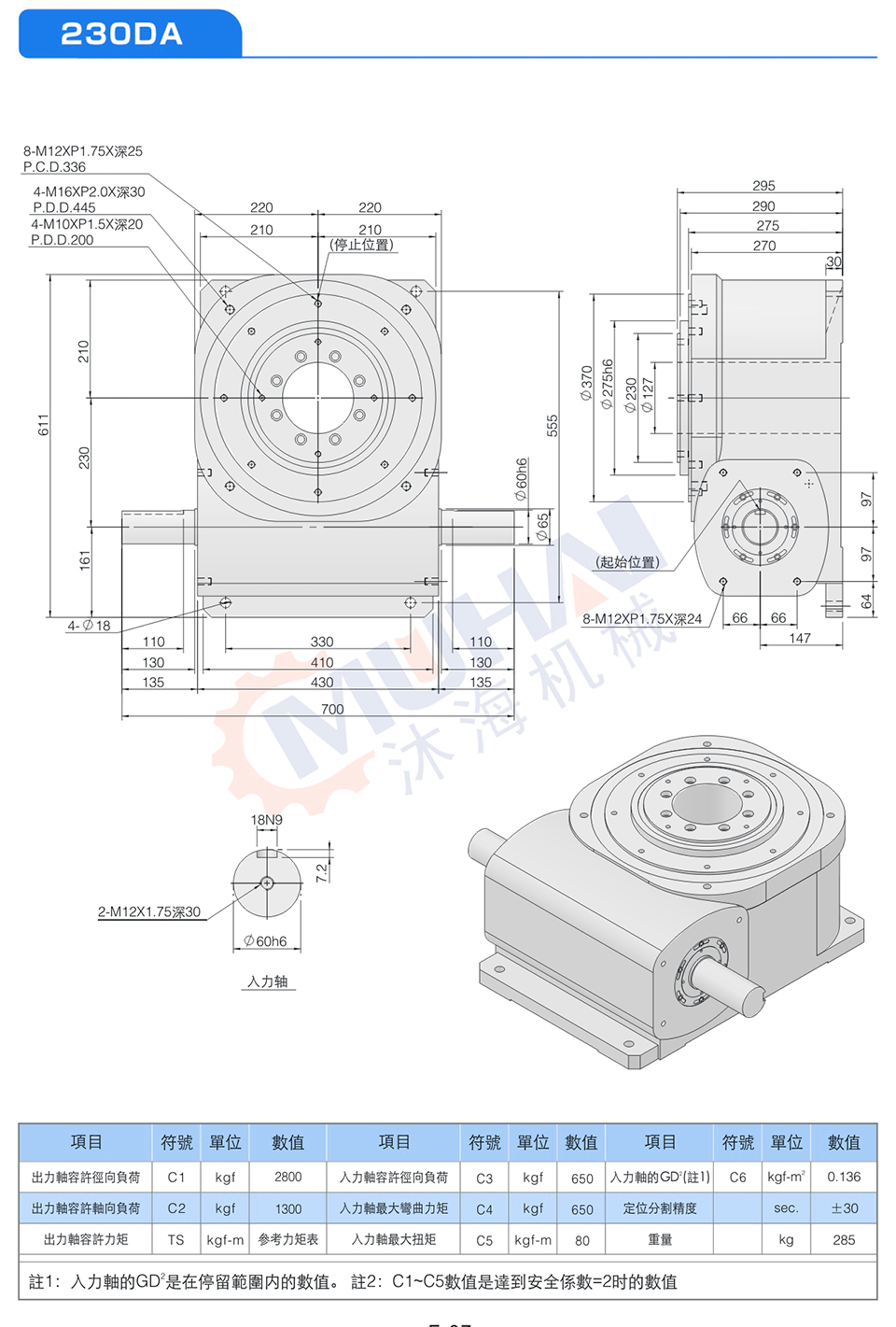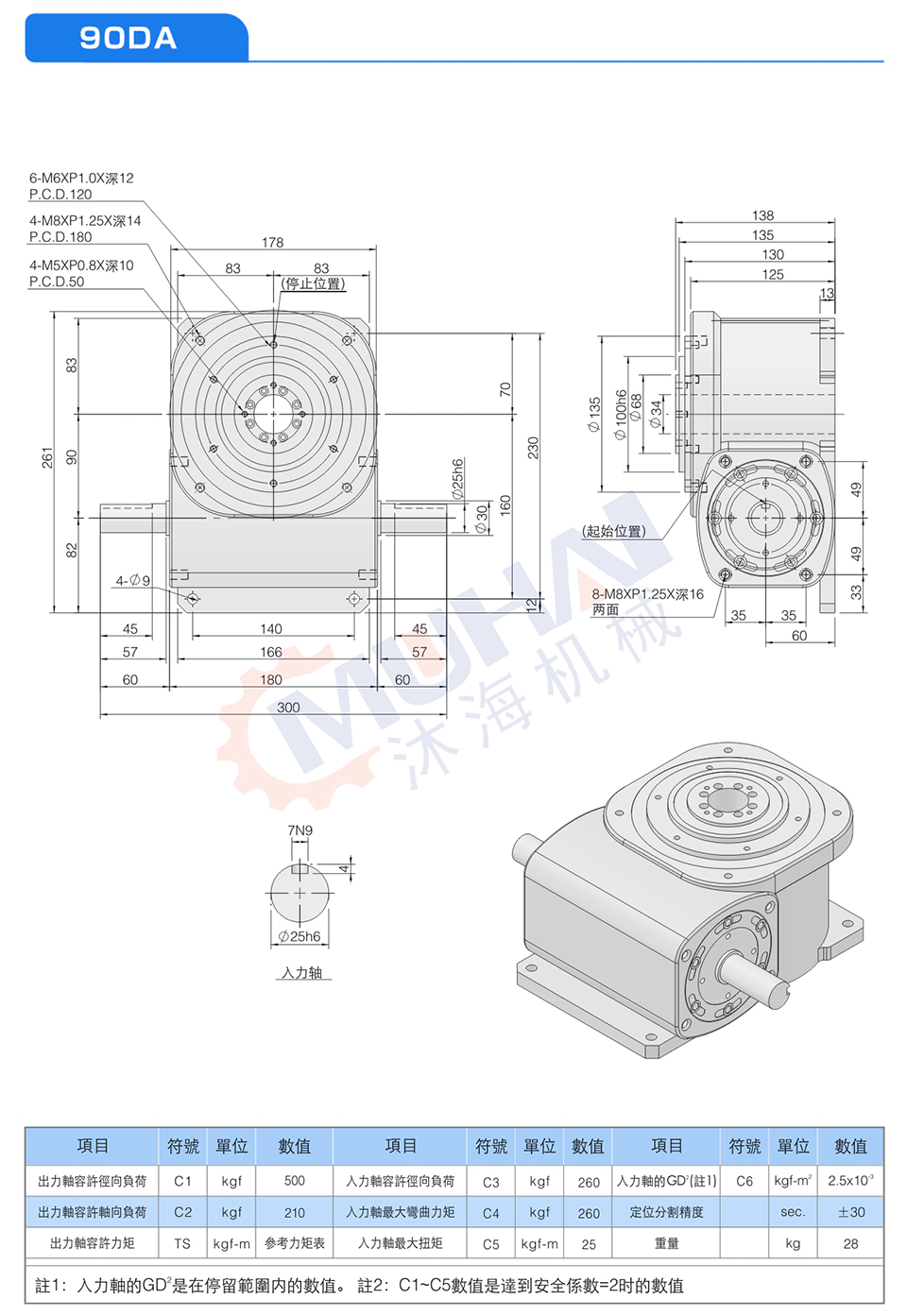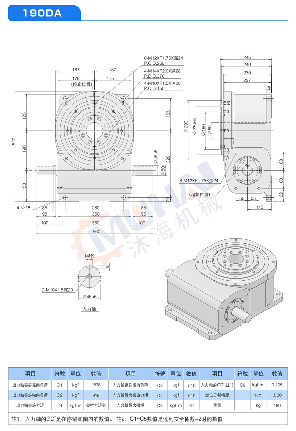 此系列機種之尺寸設計特性與平臺桌面型功能相似,于驅動運轉上可承受超大軸向負載及垂直徑向壓力,在輸出端有一凸起固定盤面及大孔徑空心軸,可搭配設置動態、靜態自動化周邊設備,可將動力源之電、油、氣管路設置于空心孔內,此系列機種廣泛用于重負載、直結自動化設備之各類種機構及產業機械等,作同步自動化間歇驅動。